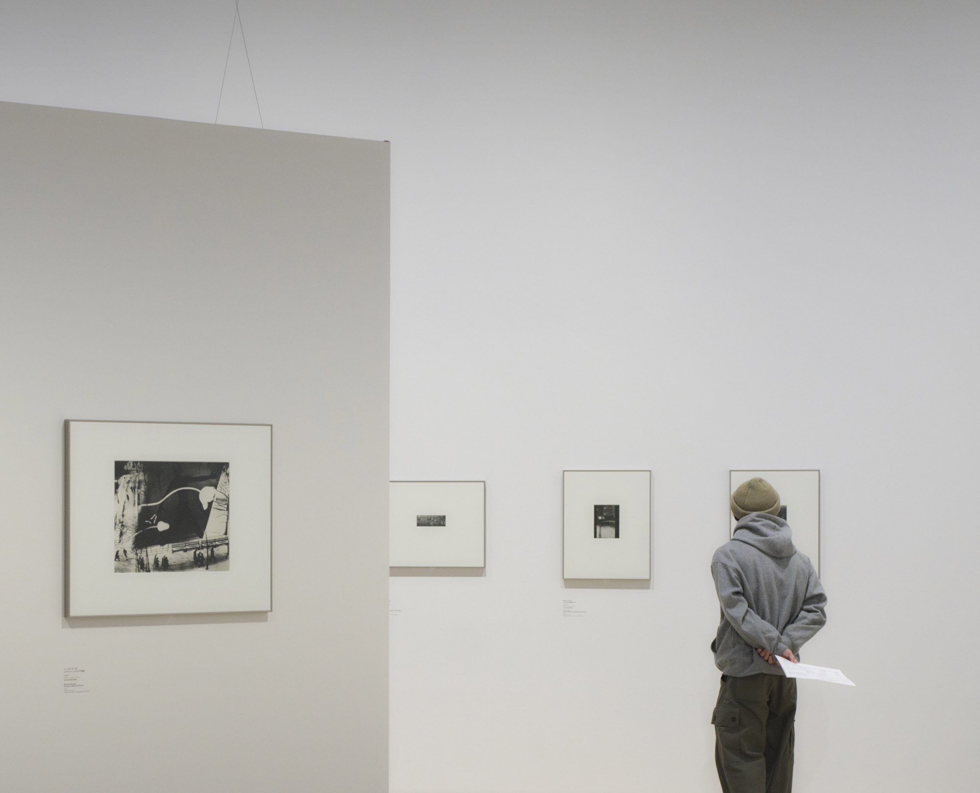 In this venue, exhibits are displayed without any particular order, given that the various expressions and experiments using the effects of light have been created through mutual influences and references.By placing fragments of the exhibition walls at a 45-degree angle, other exhibits are always in view and spaces unexpectedly open up in front of and behind the viewer. It is in this way that the viewer enters the labyrinth of the history of photography.